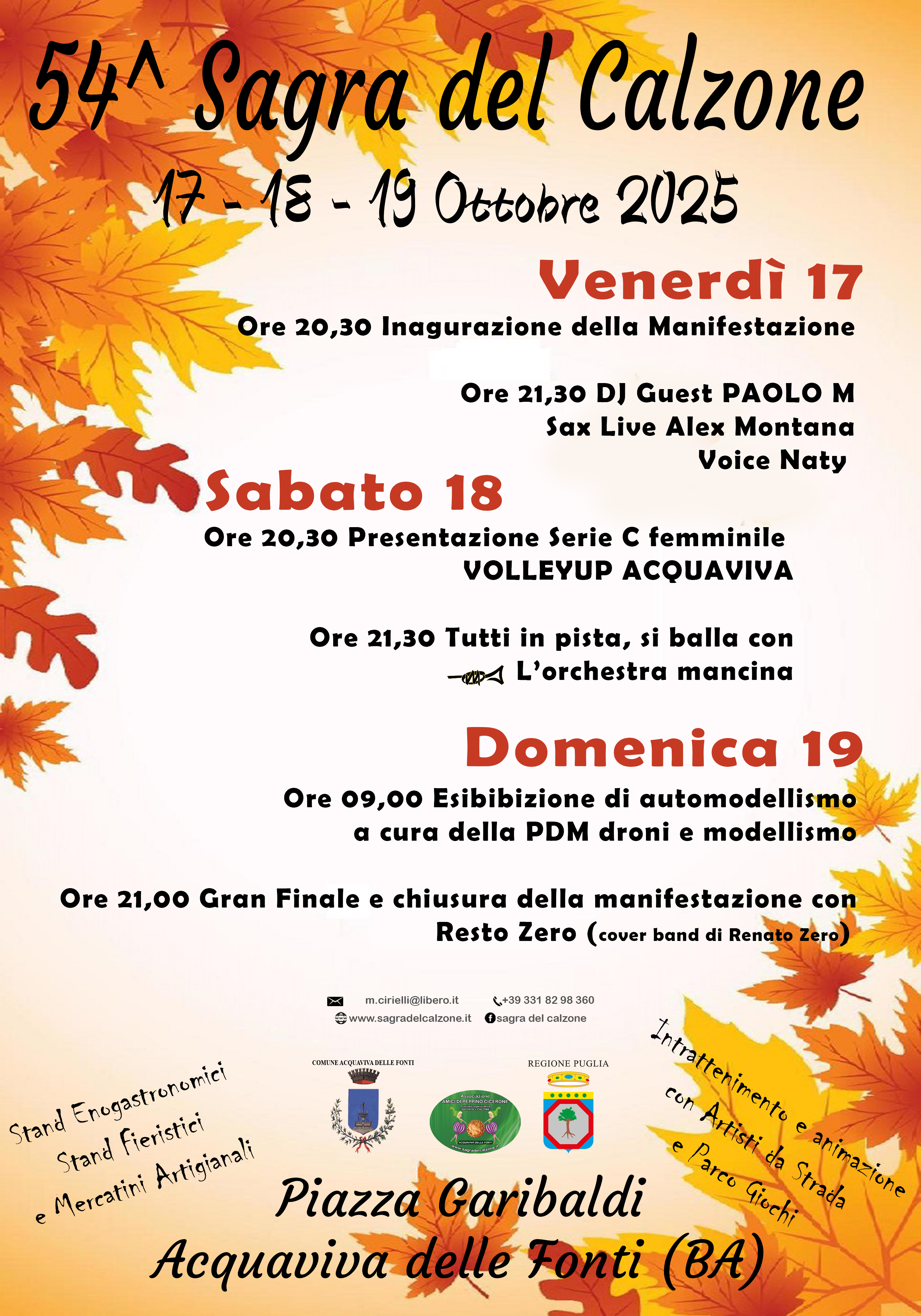 Il programma della 54^ edizione Visualizza la locandina ingrandita con un clik sulla stessa Venerdì 17 Sabato 18 Domenica 19